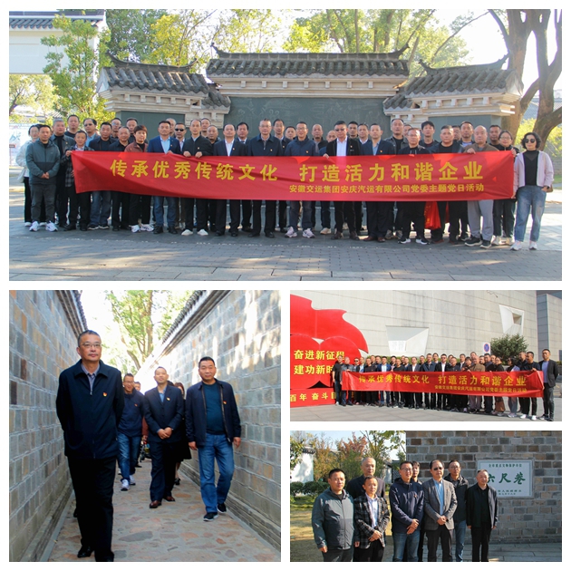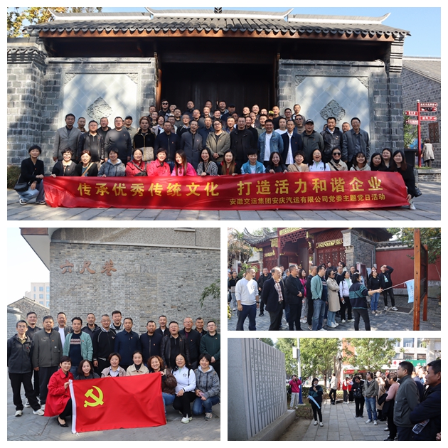 為深入貫徹習近平總書(shū)記考察安徽時(shí)的重要講話(huà)精神,進(jìn)一步弘揚中華優(yōu)秀傳統文化,加強精神文明建設,提升黨員干部的崇德尚禮品質(zhì),安慶公司黨委于11月7日至8日,精心策劃并組織了以“傳承文化精髓,打造和諧企業(yè)新篇章”為主題的黨日活動(dòng)。此次活動(dòng)由公司黨委主導,桐城分公司黨支部具體承辦,市客運分公司黨支部積極參與協(xié)辦,實(shí)現了全司黨員干部的廣泛參與。